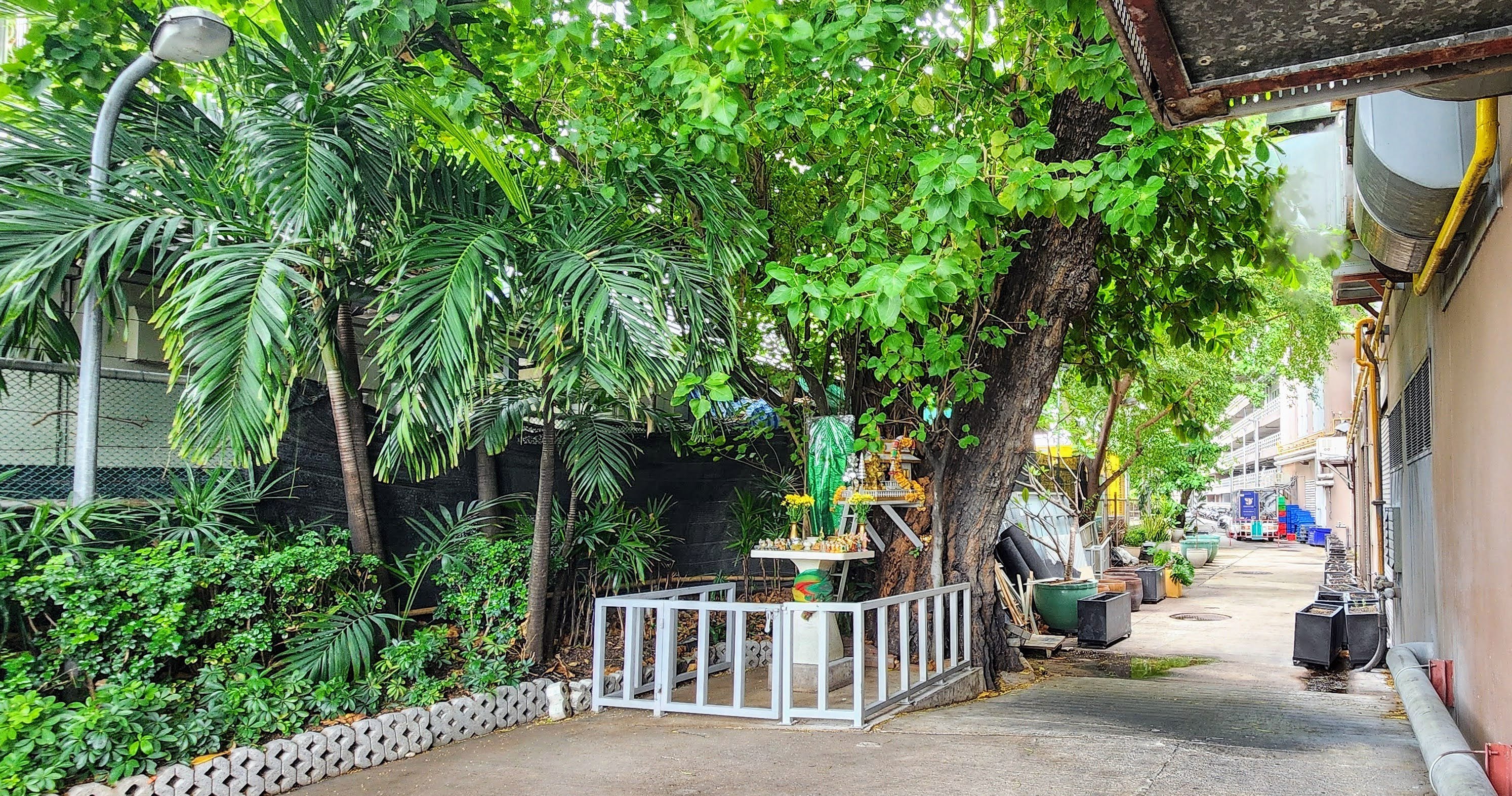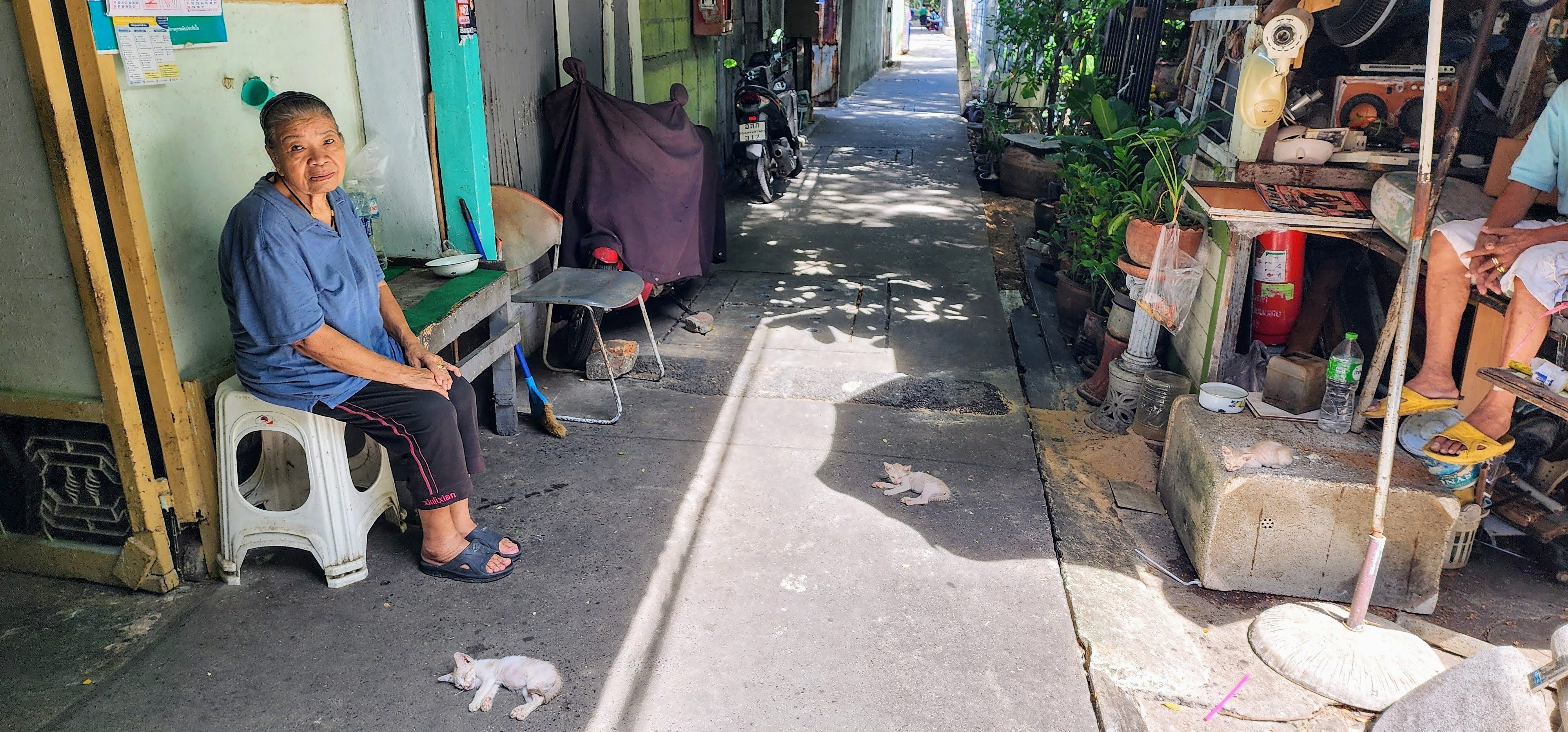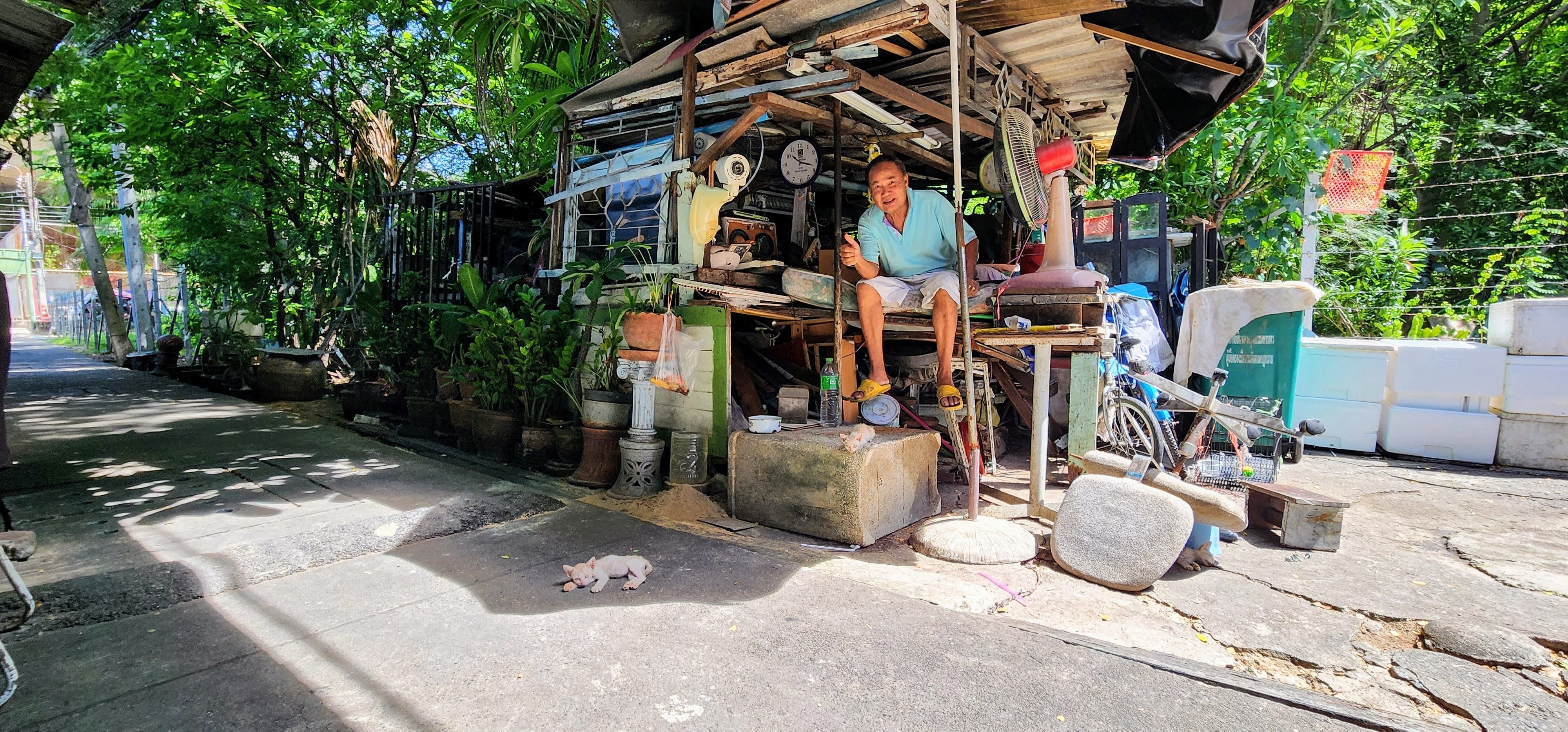 After breakfast we got a quick photo with some of our favorite servers, Mr. Pornsak, Prim (aka Dutchess Primrose), and Tin (I wish we could have gotten Beu in there as well). Nan set off for the dentist and I decided to do a Vishnu Temple safari. I called it that because rather than take the big busy streets I wanted to take the smallest alleys and walkways I could find. I figured there may be dead ends and wild animals, and I wasn’t disappointed.