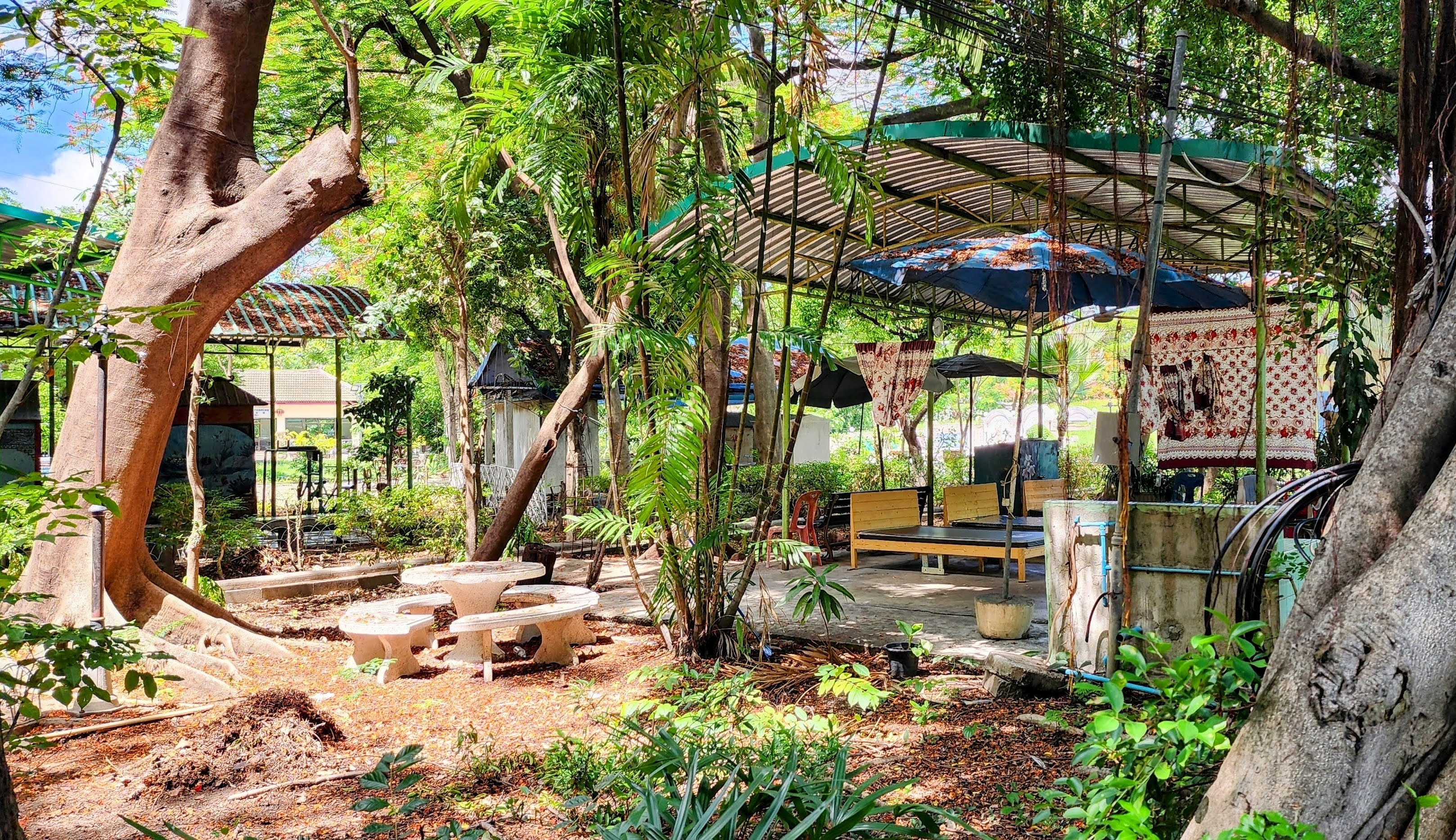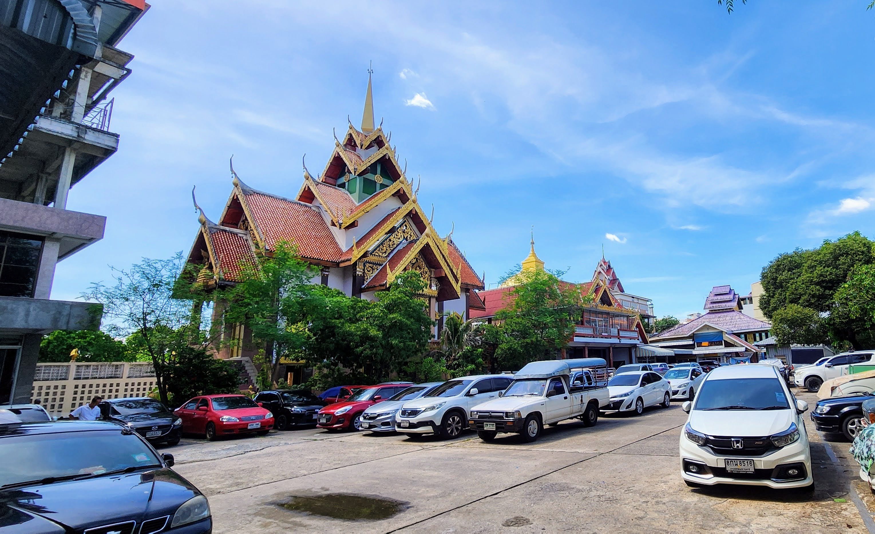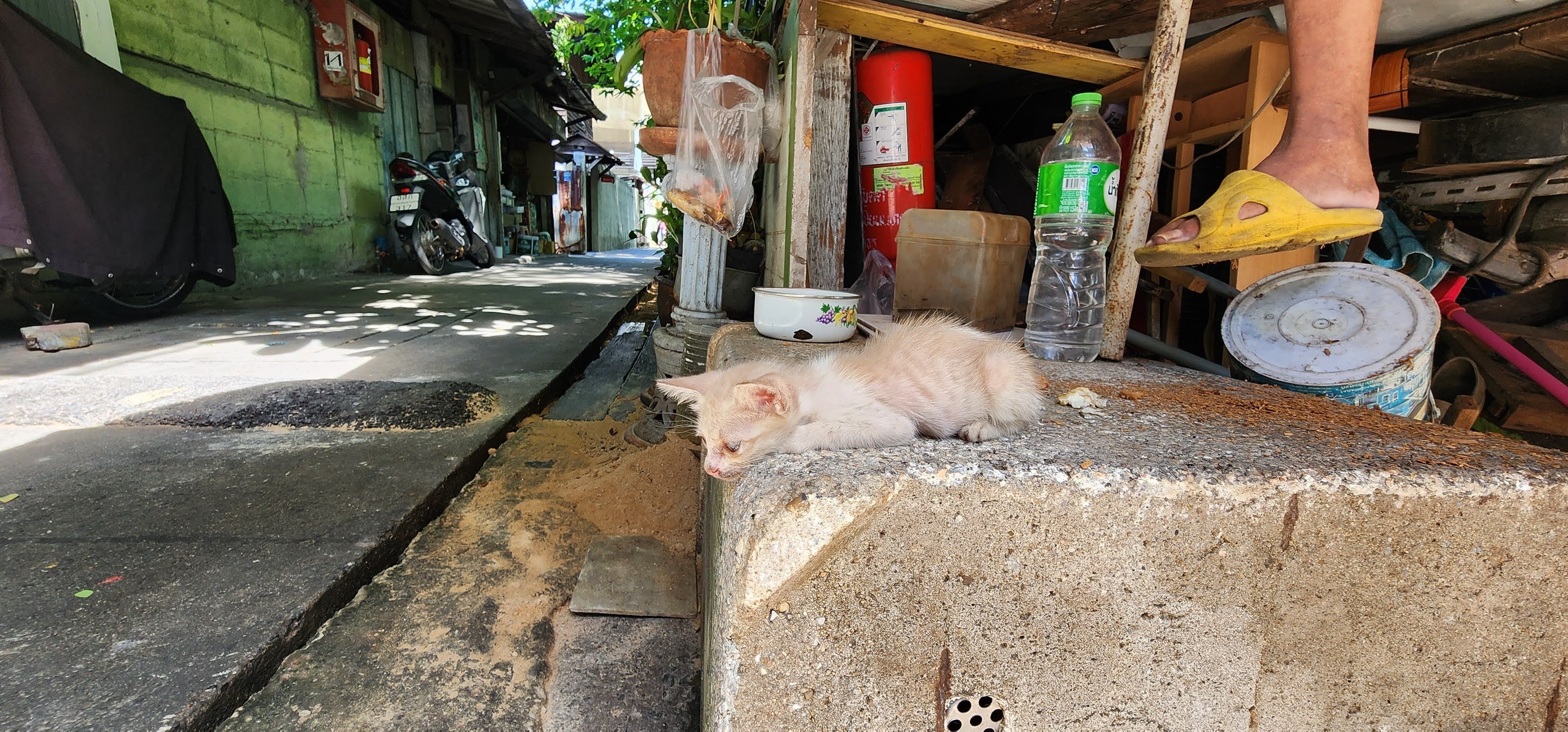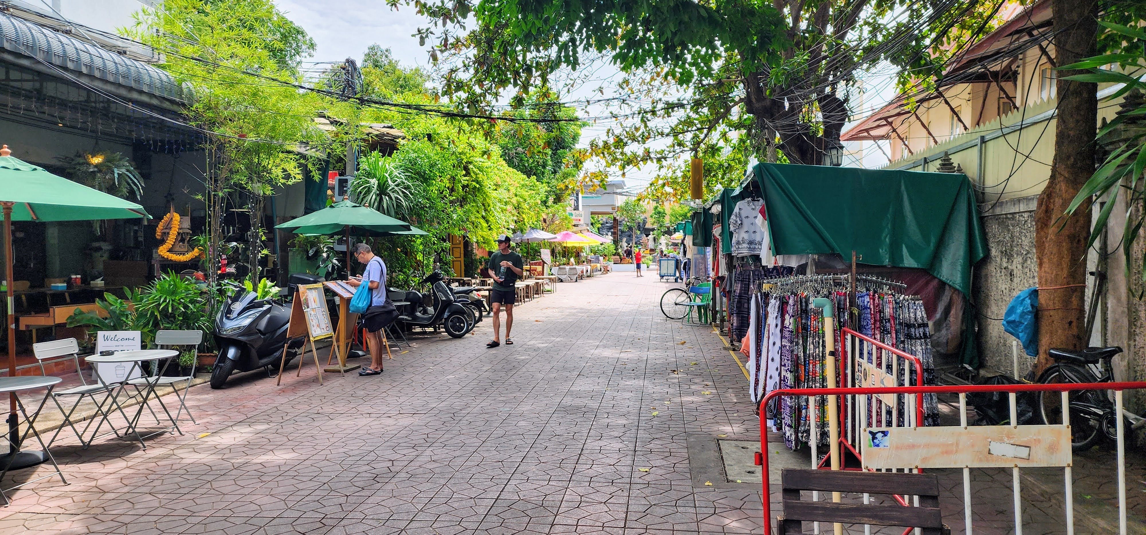 After breakfast we got a quick photo with some of our favorite servers, Mr. Pornsak, Prim (aka Dutchess Primrose), and Tin (I wish we could have gotten Beu in there as well). Nan set off for the dentist and I decided to do a Vishnu Temple safari. I called it that because rather than take the big busy streets I wanted to take the smallest alleys and walkways I could find. I figured there may be dead ends and wild animals, and I wasn’t disappointed.