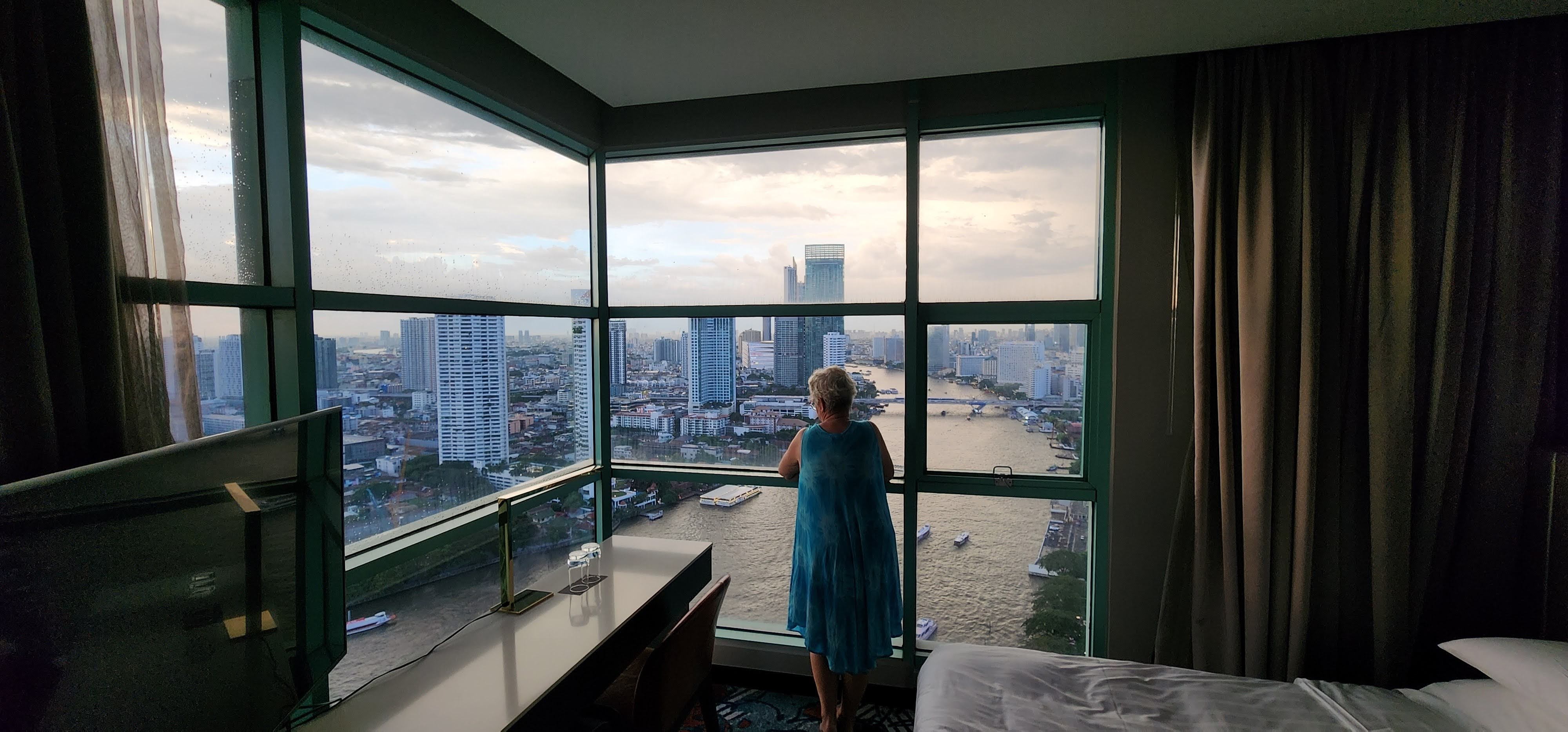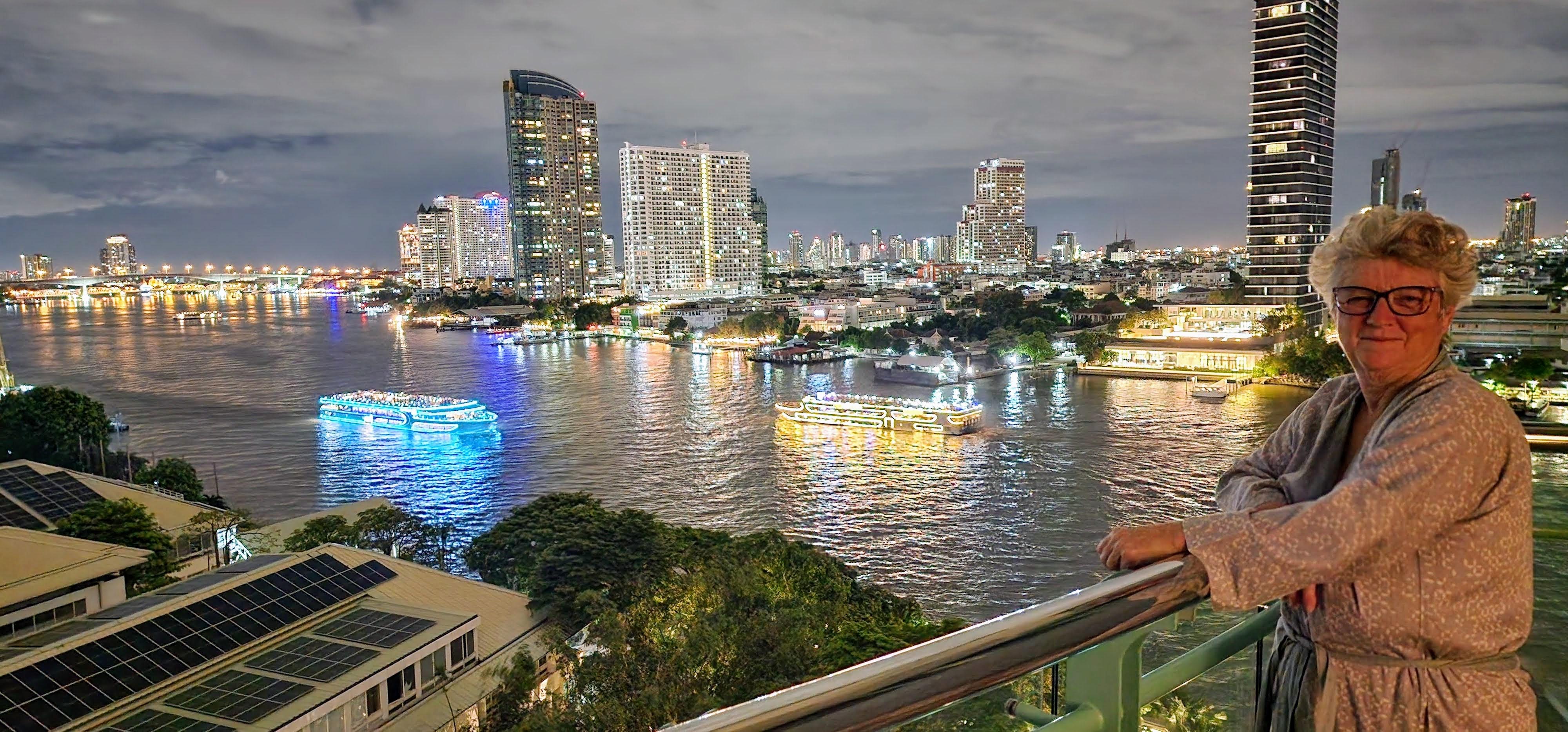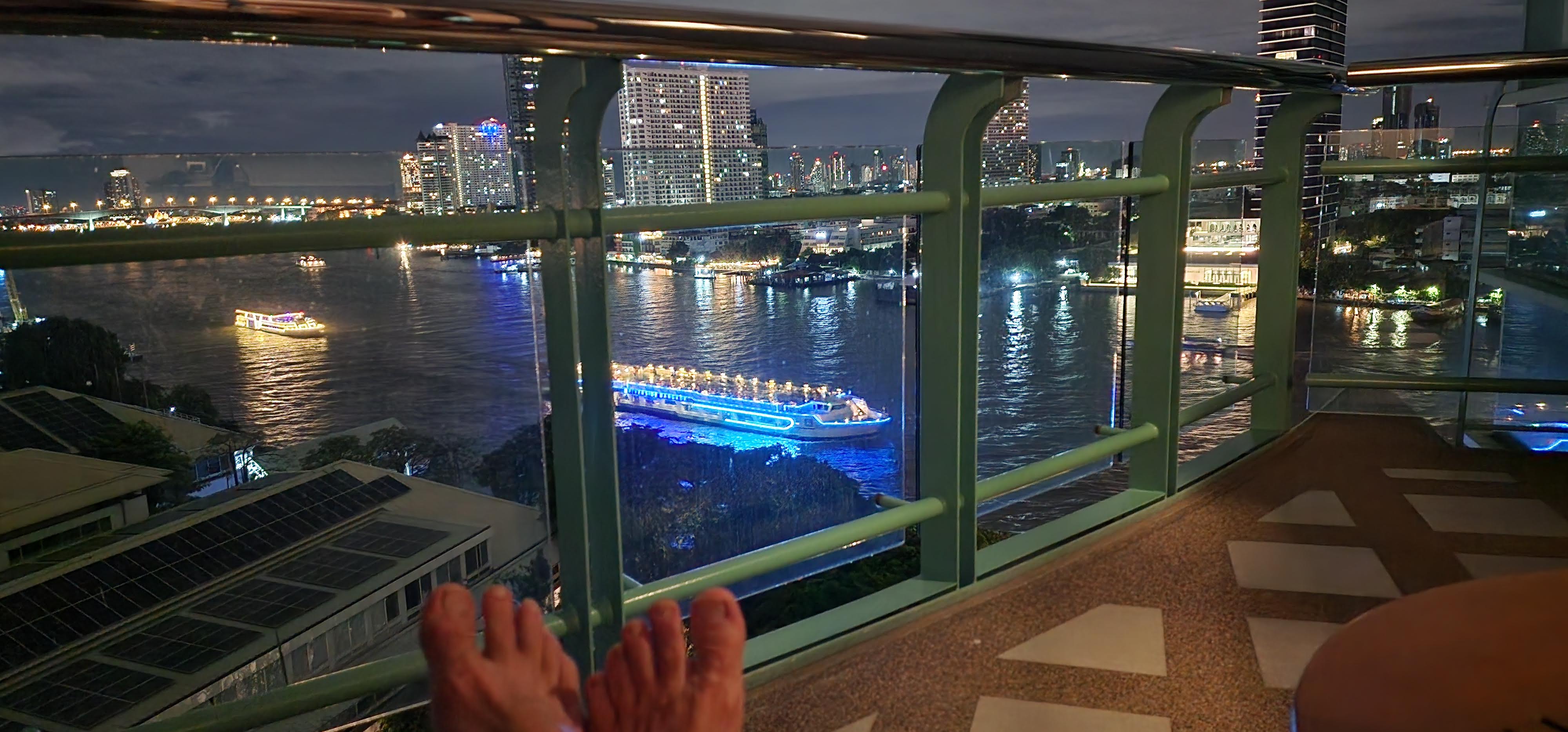We decided to move up to the 34th floor for our extended days. The view was spectacular. Neil took lots of photos of the city and river, which was always changing. We did some minor excursions such as visiting Icon Siam shopping center and Asiatique. I don’t have the energy for my usual writeup, so just enjoy the photos in the gallery. Many have descriptive titles and captions. Thankfully, Neil took over writing up our activities while I was temporarily out of commission.