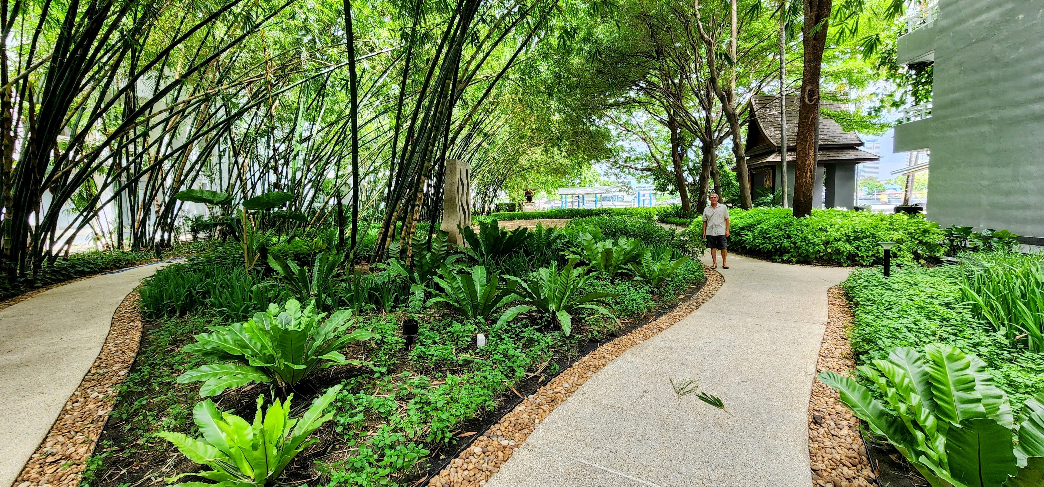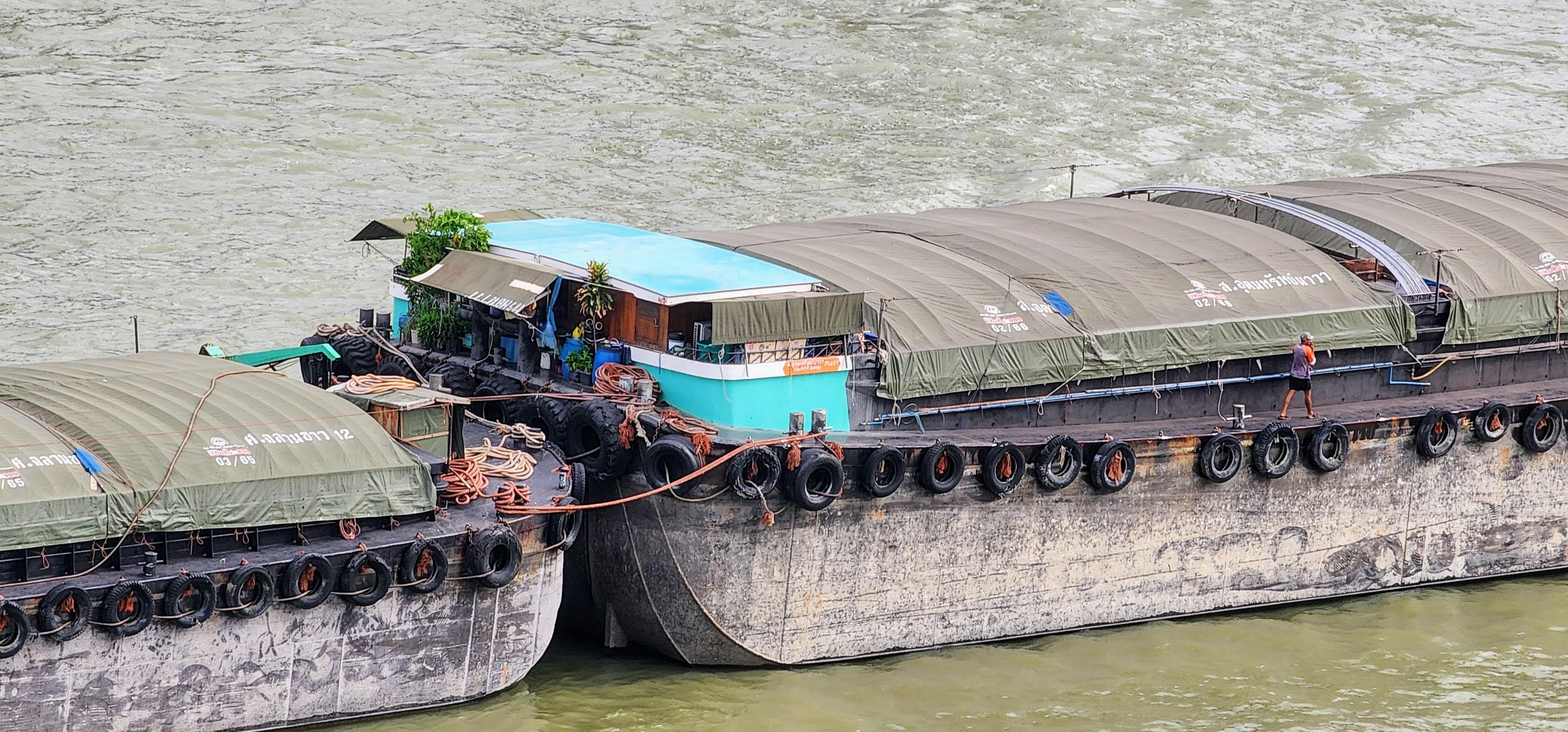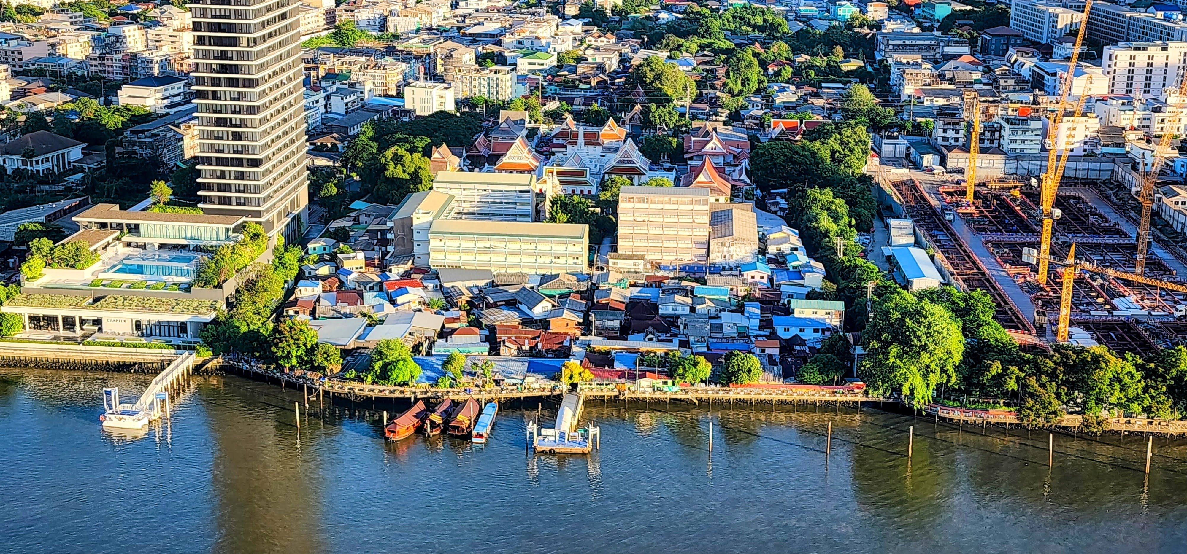 I rode the hotel ferry back from Sathorn Pier, standing there leaning over the rail as usual even though I didn’t even pretend to be taking pictures since there were no other passengers. When Nan got back from the dentist she took a short nap while I worked on photos and then we went down to happy hour canapes and a stroll along the riverfront. I’ve been capturing another sunset time-lapse while writing this. You can see how I put the little tripod on an inverted table on a chair, powered by long USB cable which also acts as a safety line just in case. I’ll post the best videos to YouTube if you’re interested.
