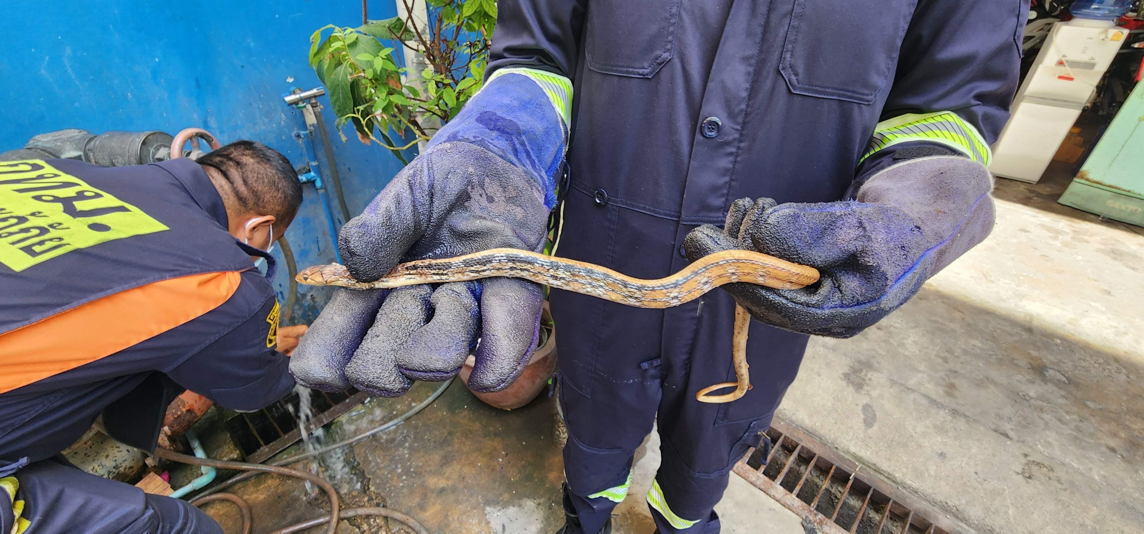 Thursday the 20th, after breakfast and another infinity reflection photo in the elevator (Nan: another one??), I decided to visit Yan Nawa Fire Station, the big fire station I saw from the window of a bus a few days earlier. When I arrived mid-morning, a couple of the guys were washing a snake. They were happy to talk with me and let me take pictures. They explained it had been caught in a rat trap and it may have had poison on it, hence the soap and water bath. It didn’t make sense to me until they were finished and they dropped it into a big cage with a pile of other snakes, some of them as big around as my arm. Once a month the department of forestry picks them up and releases them into the wilderness. They usually have 20 or 30 snakes each month. After bonding over snake washing, they gave me a quick tour.