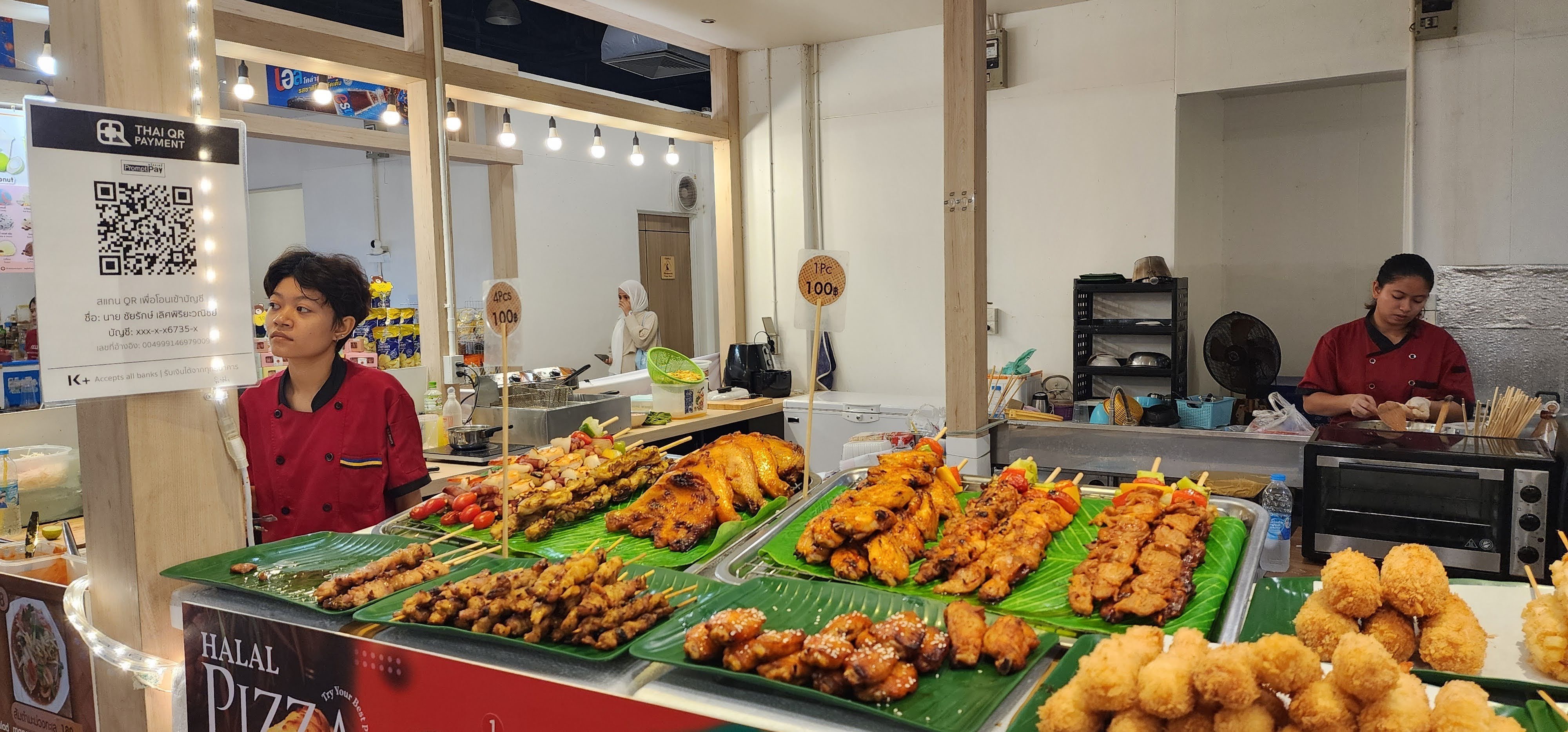 After high tea and our afternoon swim (pool, not river), we decided to finally go see Asiatique to get some good photos at sunset. Hahaha, a dramatic little thunderstorm decided to visit Asiatique pretty much the same time we did. I got a beautiful photo of it building up as Nan boarded the shuttle boat. But it all worked out fine. The rain hit within 5 minutes of our arrival and we wandered around the shops while the rain came down. I got some chicken satay skewers from a pretty Thai food service worker who had perfected the universal bored teenager look. We were finished about the same time as the rain tapered off. Among throngs of shoppers squeezing past each other in narrow passageways I was once again reminded I am not a herd animal.