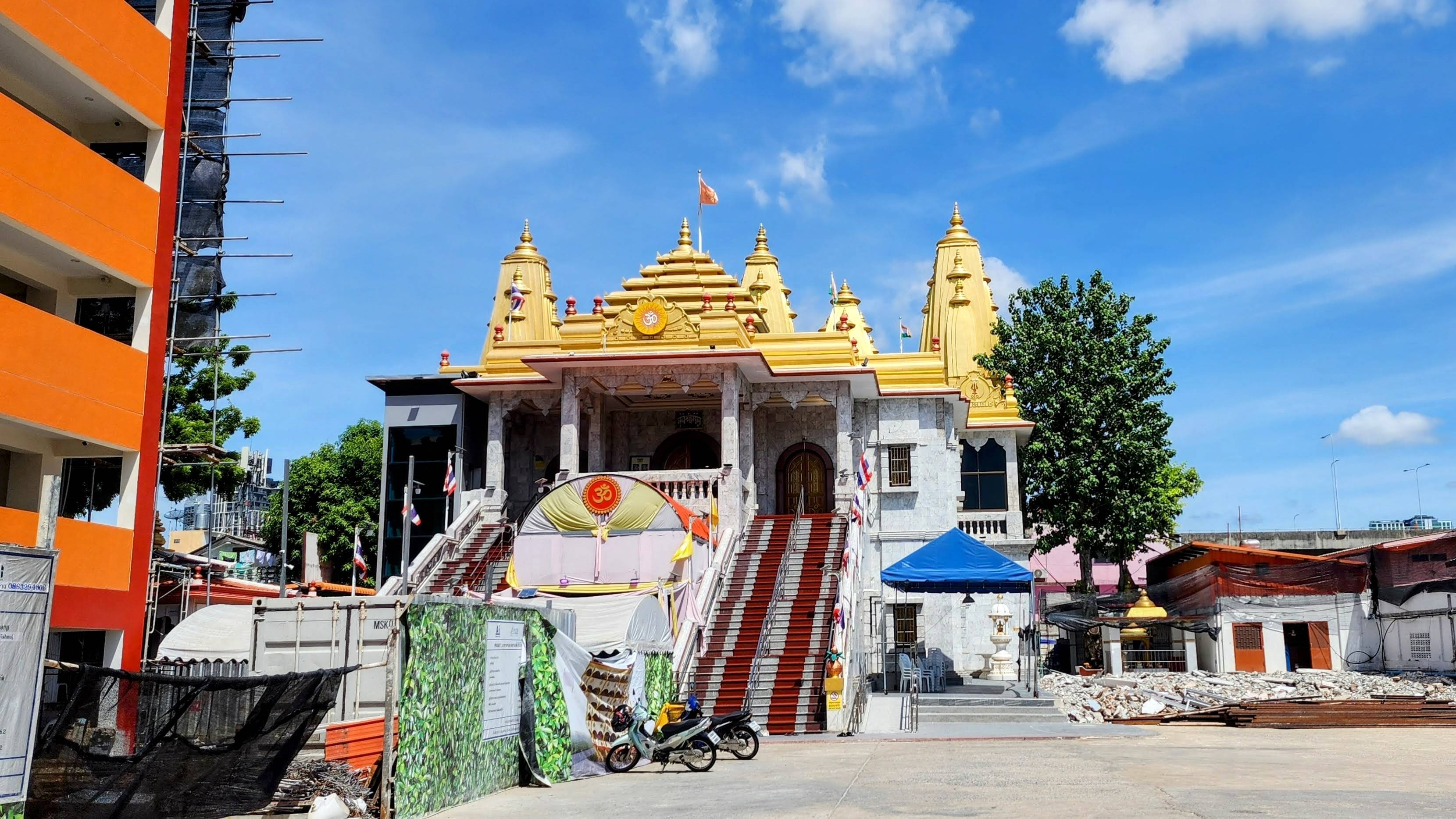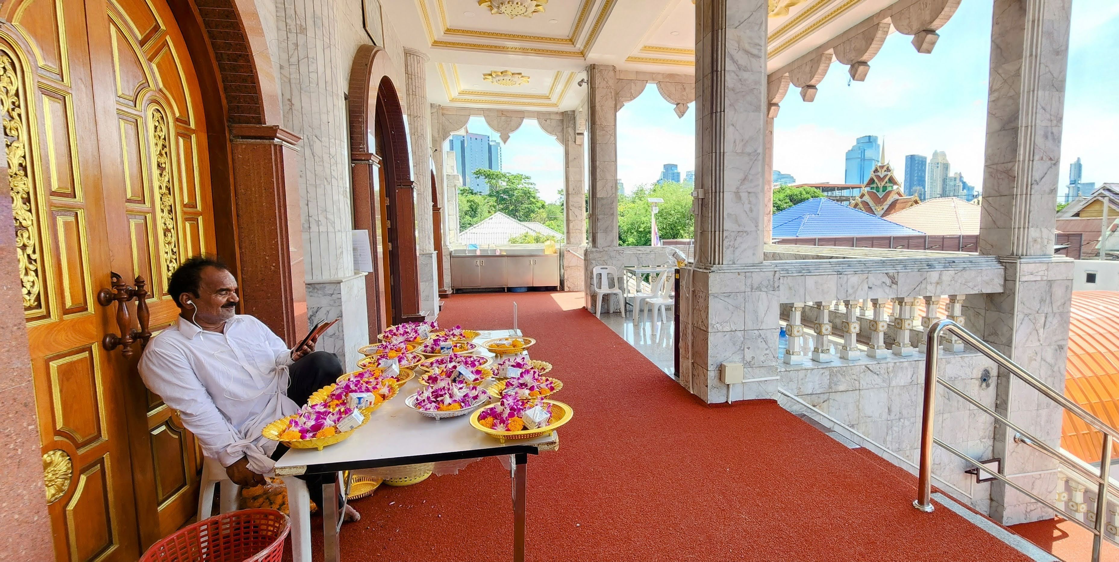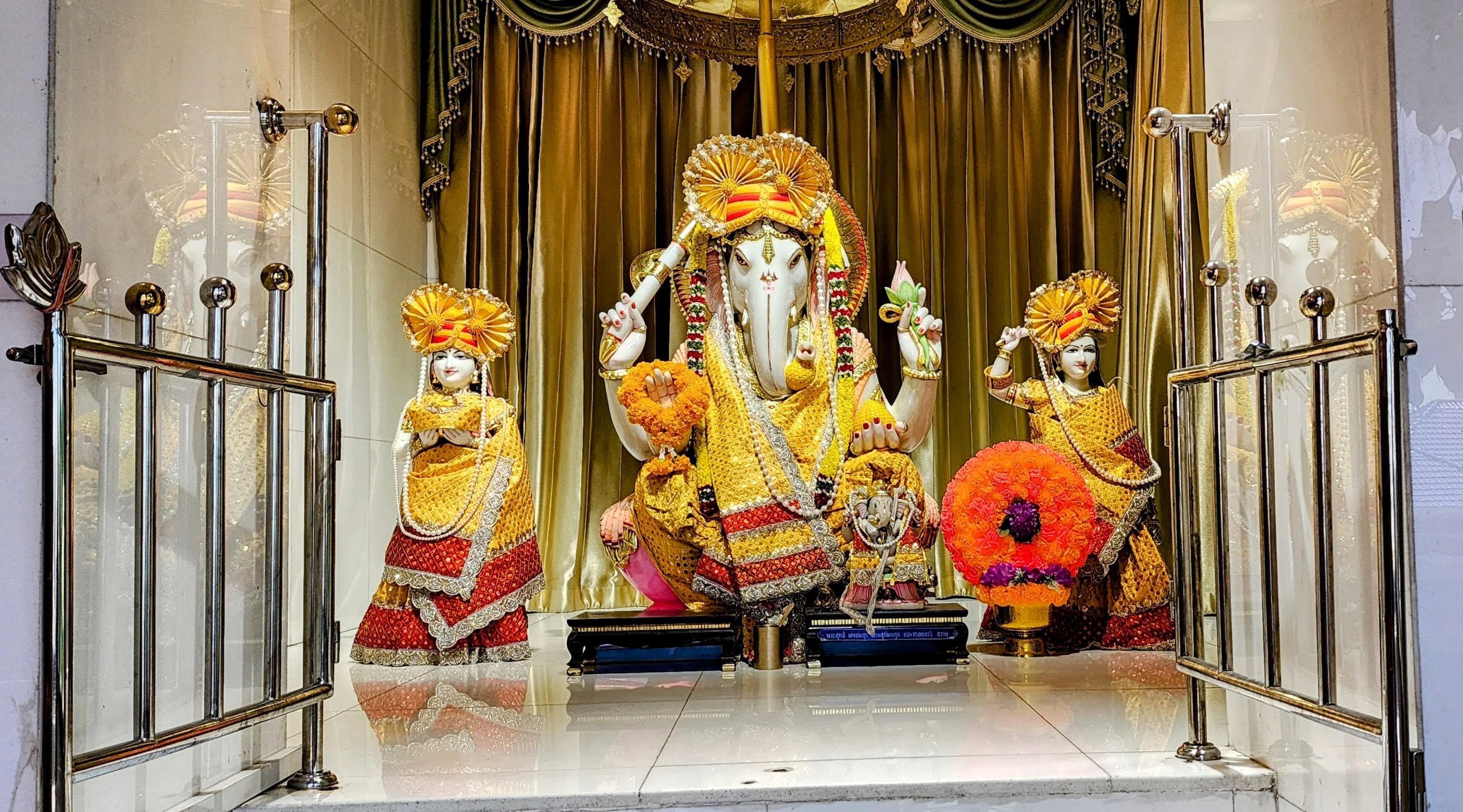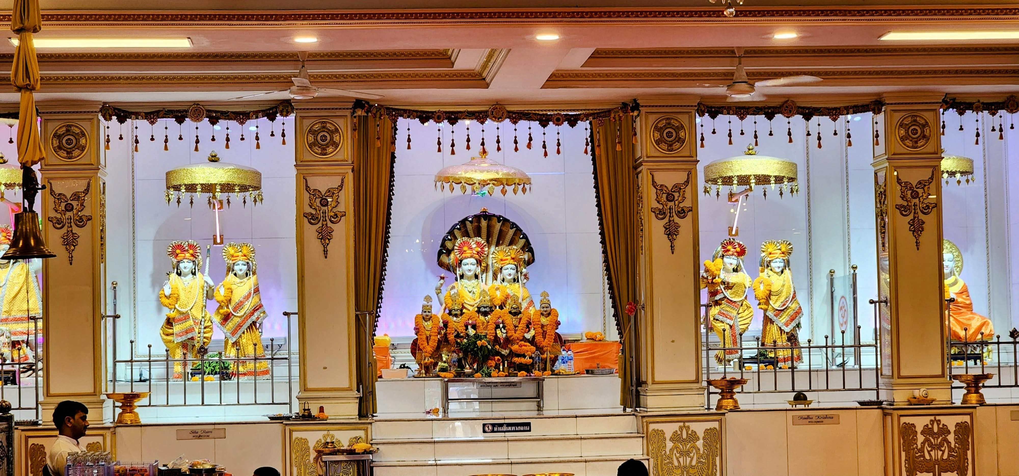 In addition to the mostly Thai population, the neighborhood has quite a few of Indian heritage. Much to our delight because right away we found an excellent little Indian restaurant frequented by locals not tourists. Seeing on the map there is a Vishnu temple within walking distance and since its beautiful beguiling gold spires were visible from our room, I decided to check it out if I got a chance.
