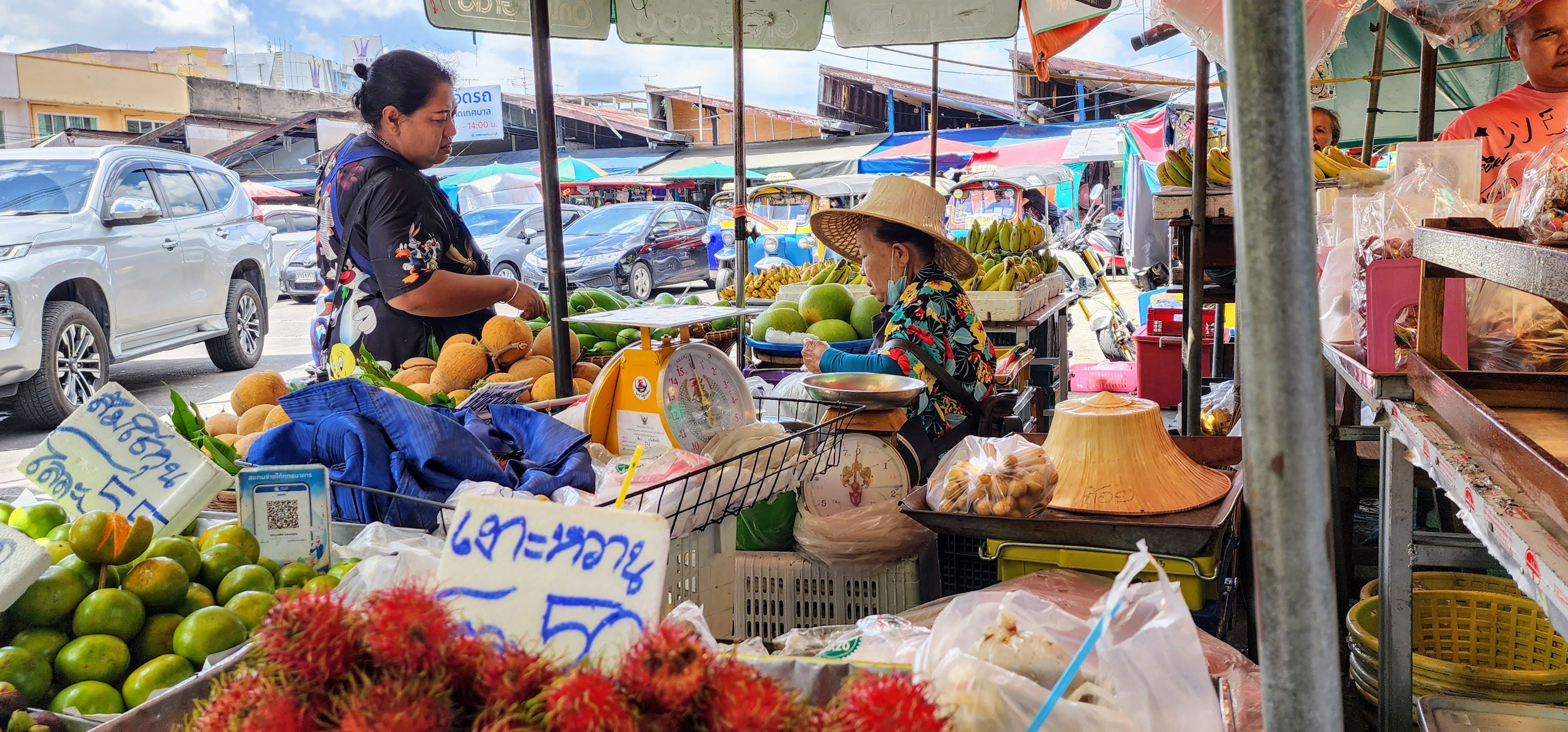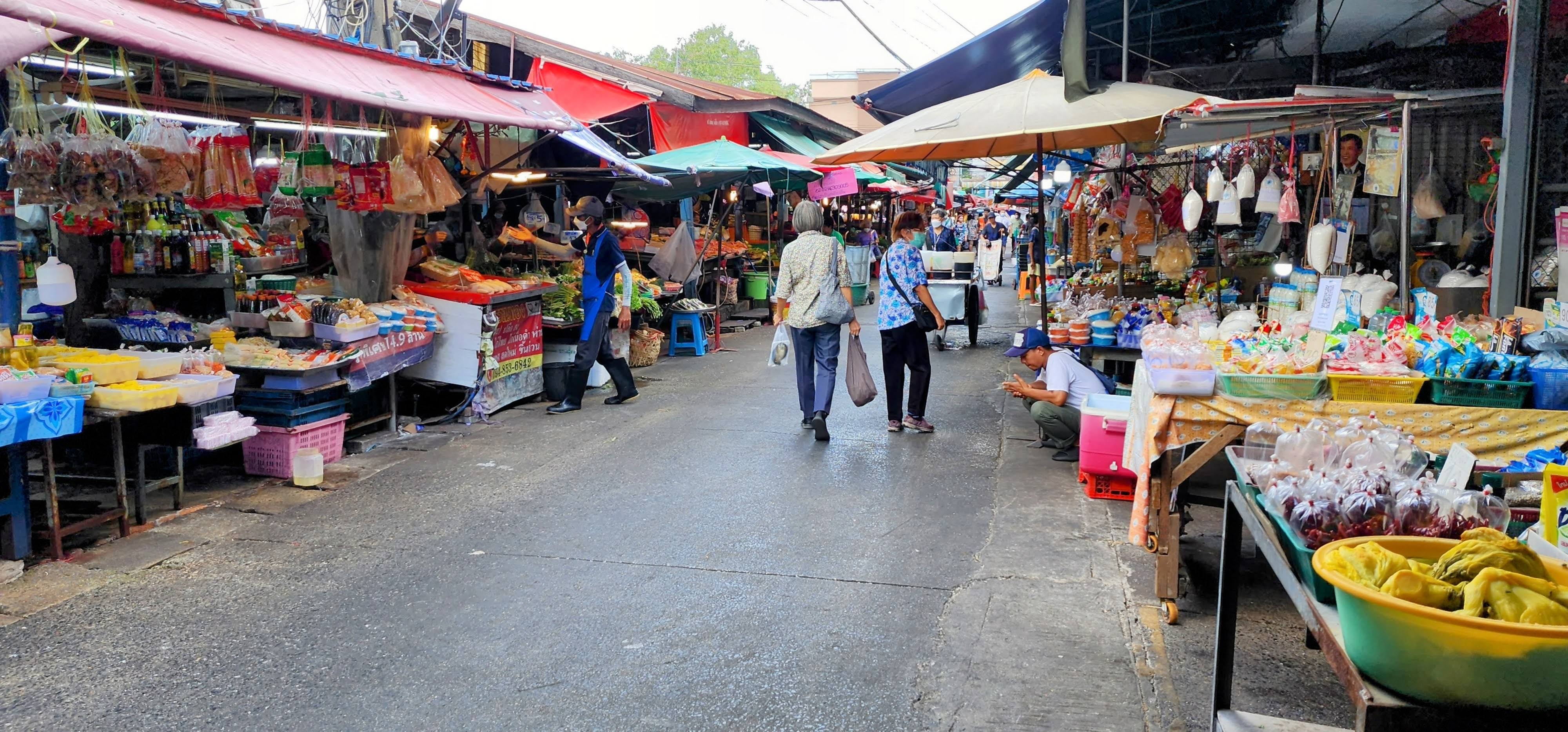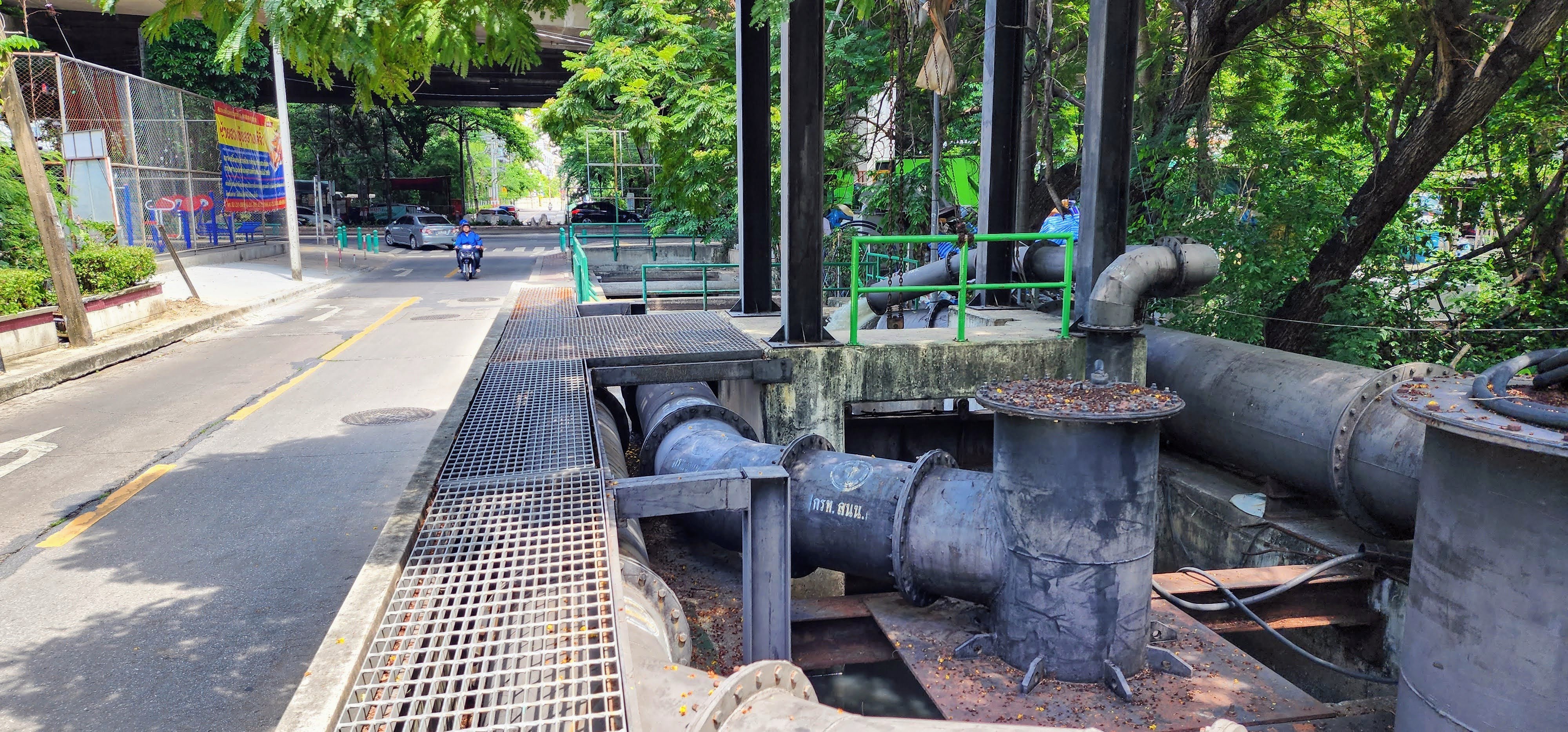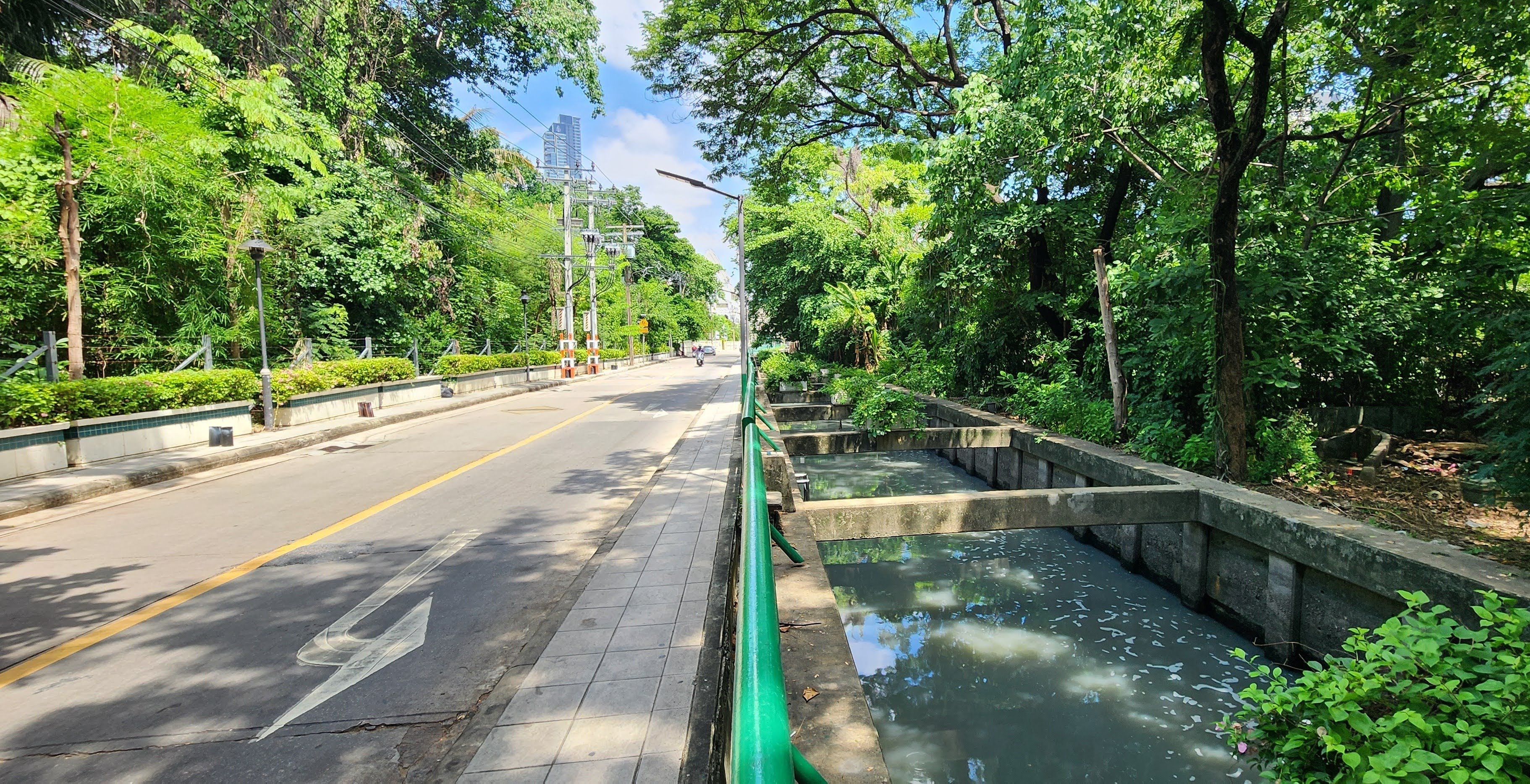 I then passed small neighborhood Wat Prok Yannawa but didn’t go inside because some kind of Moms and Kids event was going on. I was attracted to the shade at nearby Teochew Cemetery Park where I wandered for a little while. The graves looked to be newer than the ones I passed earlier. The park was well tended and I saw several people out for a walk or exercise. Nearby was a small fish and shrimp farm. Had a worker been present I might have asked if I could let a shrimp pinch me to see what it feels like. Many years ago I sat in a little jungle stream near Panelque and the shrimp came out and crawled all over me and it tickled so bad! Their pinches didn’t hurt because they couldn’t get a grip. As big as these shrimp were, they looked pretty weak.