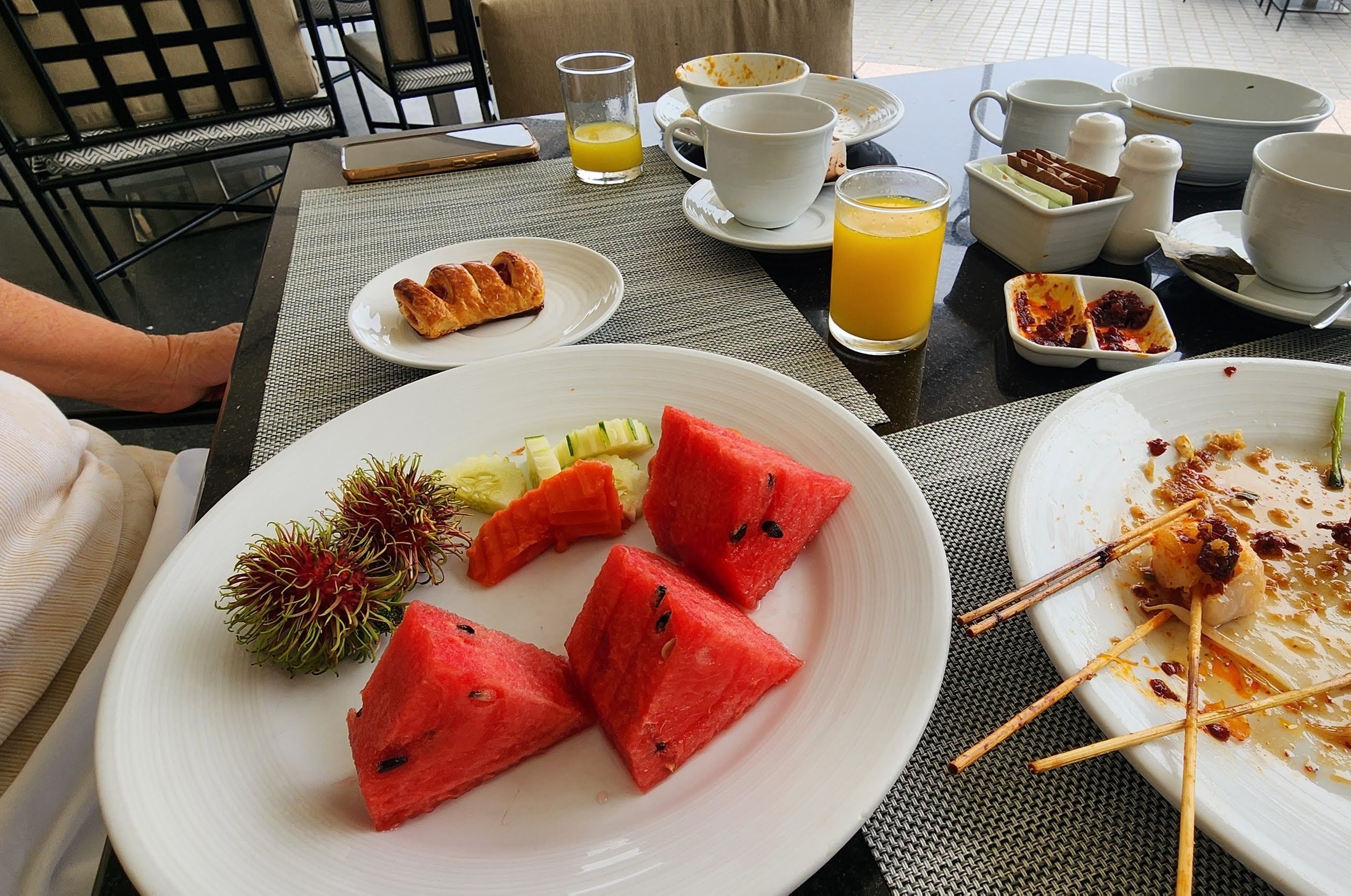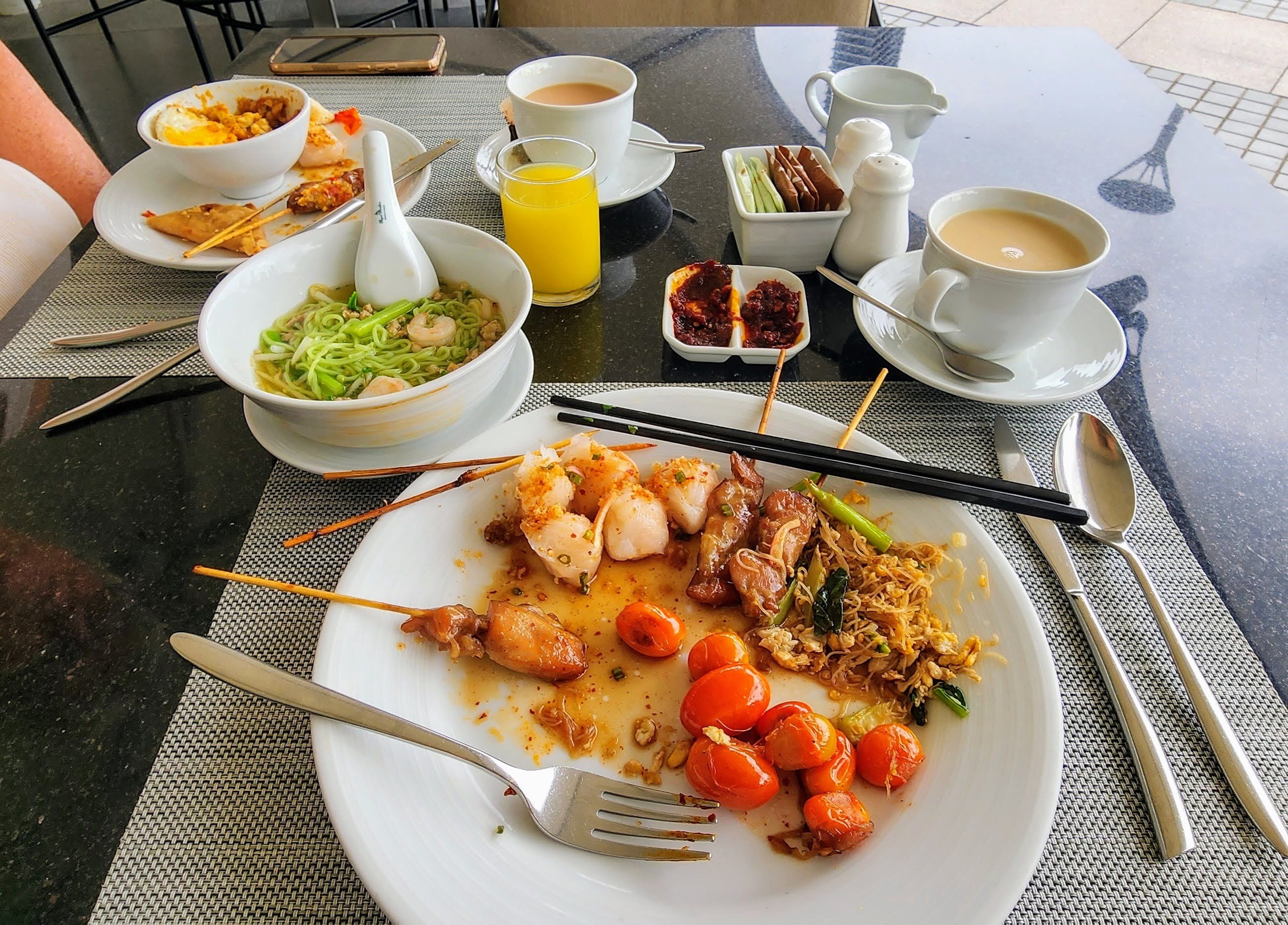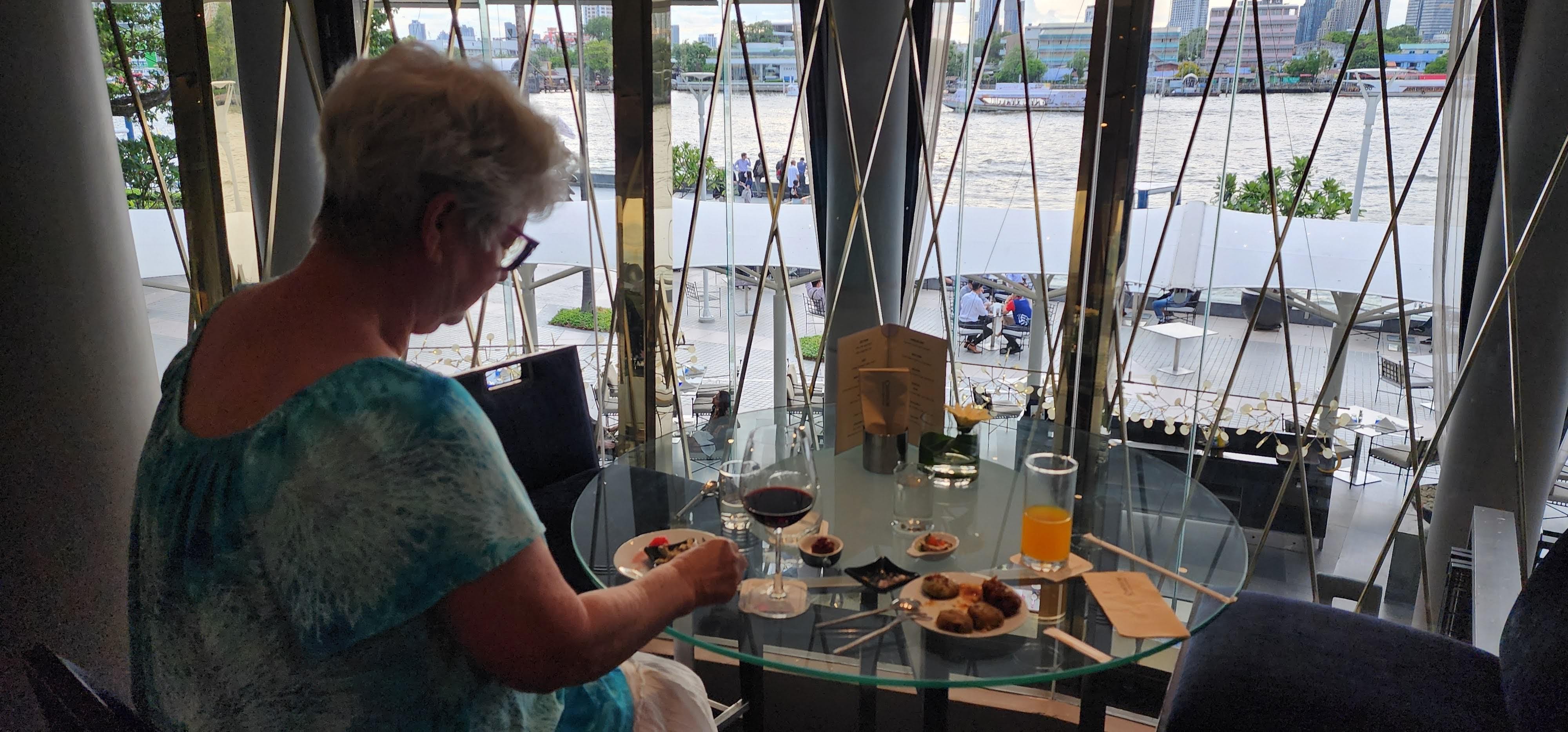I’m done with the dentist for this trip and now I have my Bangkok smile! 😁 We extended our stay by three days to finish all the work. The dentist had three crowns made overnight because he wasn’t happy with how the three of them fit yesterday and then he took the sutures out. I’m celebrating with a cocktail and canapés at the hotel.
